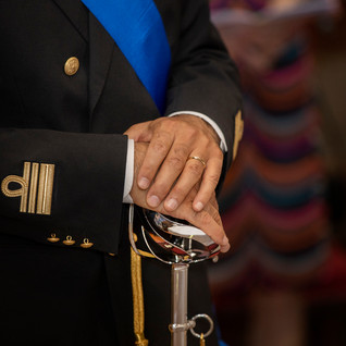 Per chi non lo sapesse, il picchetto d'onore consiste in un dispiegamento, su due file parallele, dei colleghi dell'Arma all'uscita della location della cerimonia. Viene a formarsi così un corridoio entro cui passerà la coppia, il cui arrivo è salutato dall'alzata delle spade al cielo, formando quello che è chiamato "ponte di sciabole". È un momento dall'indubbio impatto visivo e che ovviamente non capita spesso di poter fotografare!