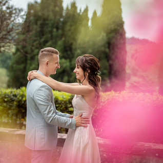 I due ragazzi sono una giovane coppia proveniente dalla Polonia che si è sposata a Villa Caruso di Bellosguardo, una location immersa nelle caratteristiche colline di Lastra a Signa. Cimentarmi con clienti stranieri per me è sempre un'esperienza bellissima, perché le difficoltà che si possono trovare nella comunicazione verbale, lasciano spazio a un linguaggio gestuale magari impacciato, ma forse più sentito diretto... e io mi diverto come una pazza, finendo per far divertire con espressioni tutte mie anche il cliente.