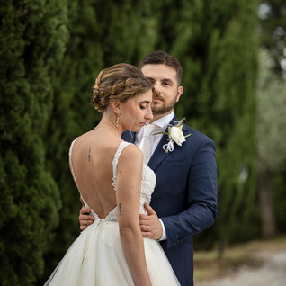 La preparazione di Valentina è iniziata la mattina presto, nella location del ricevimento: il suggestivo agriturismo I Viticci, immerso tra ulivi, cipressi, vigneti e rose in piena fioritura. È stato un momento davvero intimo, lento e silenzioso; un'atmosfera che mi ha permesso di fotografare i dettagli importanti con la giusta attenzione e serenità. Qui era presente anche l'altra grande protagonista della giornata: Cesira, la loro cagnolina, che siamo riuscite a coinvolgere nonostante fosse emozionata dallo stravolgimento della solita routine quotidiana.